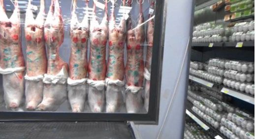 At the Carrefour Market, as well as outdoor markets, there is an abundance of fresh meats, including full carcasses hung in glass-door coolers, butcher cuts in refrigerated cases, and a variety of prepackaged sausages, cold cuts, and cheese as well.
