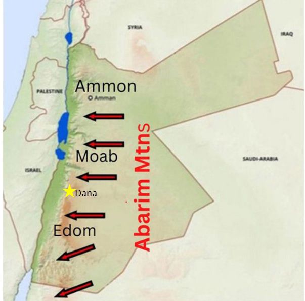 The ancient biblical nations of Edom, Moab, and Ammon lie mostly along the Abarim Mountains, stretching from Mt. Nebo, where Yehovah allowed Moses to view the Promised Land, down to the Arabian Desert in the northwest corner of Saudi Arabia. We can see the mountains from our courtyard, backing up to our apartment building.