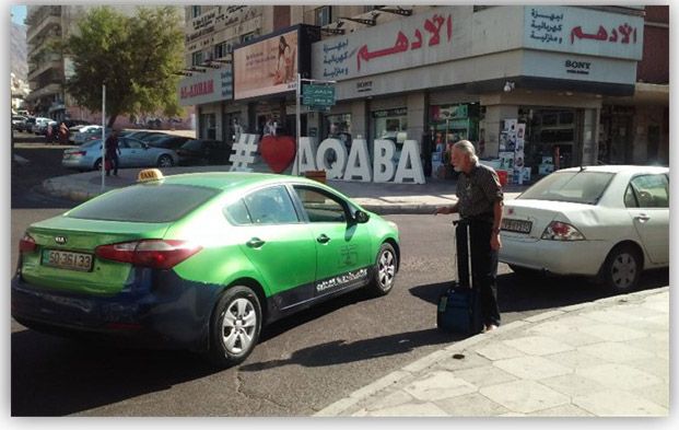 · Taxis are everywhere—yellow ones in Amman and green ones in Aqaba. They are very affordable at 2 JD ($2.82) to go anywhere in town one way.