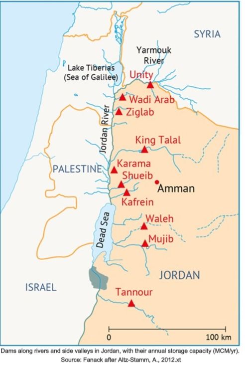 Most of the major water resources in Jordan are shared with neighboring countries Israel, Saudi Arabia, and Syria. Its water comes from: