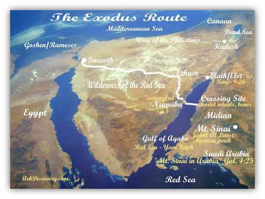 Forty miles south of Aqaba, in Saudi Arabia, Moses and the children of Israel emerged from the bed of the waters. They crossed on the dry land bridge, now under water and deep enough for freight-laden ships to pass overhead. This is the eastern finger of the Red Sea.
