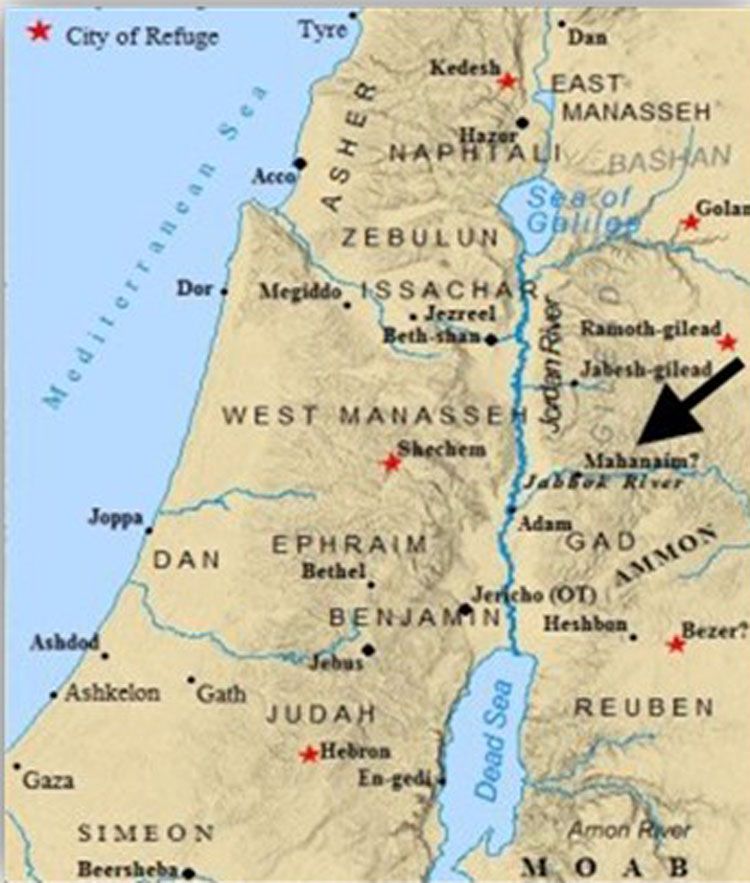 When Jacob returned from living in exile from his father Isaac, he feared meeting his brother because Esau said he was going to kill him. He spent a few nights in Jordan at the biblical location he named Mahanaim (ma-ha-na-EEM), two camps. Yehovah protected him there from his brother’s four-hundred-man army. The news about Esau made Jacob very nervous, so for safety reasons, he divided his household into two camps. Their reunion turned out okay, but Jacob found divine refuge in Jordan.