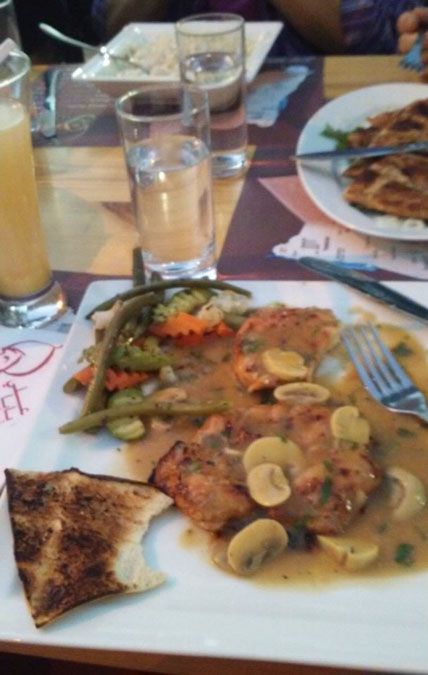 We ate al fresco on a lovely evening in November and enjoyed every bite. I can’t remember the name of the dish I ordered. I do remember it was delicious, along with the tall glass of freshly squeezed orange juice.