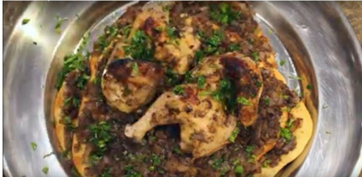 MAQLUBA (mak-LU-bah) – upside-down chicken rice platter