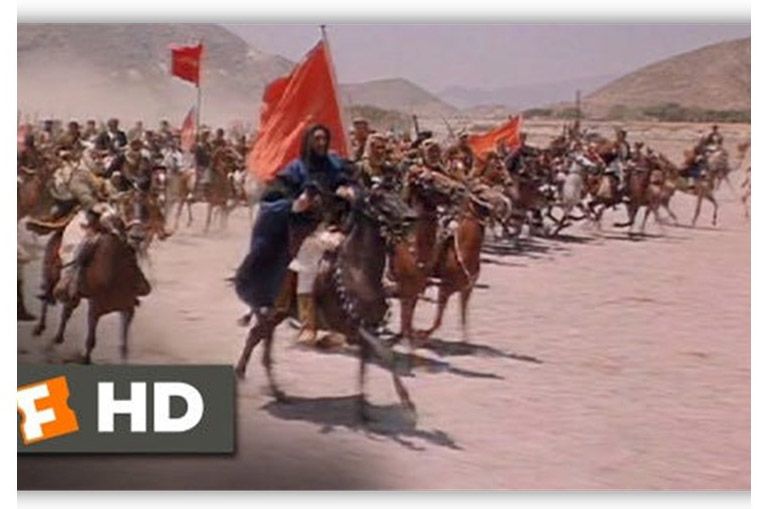 The movie is, of course, not entirely true. Instead of this famous scene of Lawrence leading the Arab troops in a massive offense,