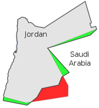 Saudi Arabia gave the green area to Jordan, and Jordan gave Saudi Arabia the red area.