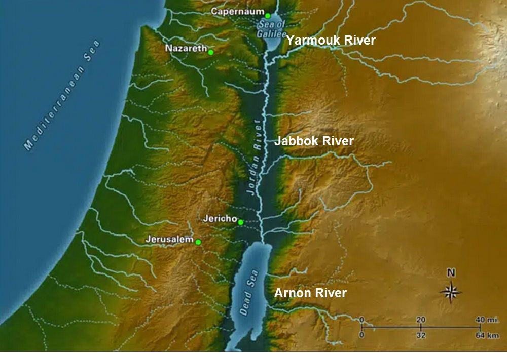 You may remember the names of the Yarmouk, Jabbok, and Arnon Rivers from Scripture. Today, they are called the Yarmouk, the Zarqa, and the Wadi al-Mujib. They form the boundaries for three main portions in the highland/mountains of Jordan. The nations of Ammon, Moab, and Edom used these same boundaries in ancient times.